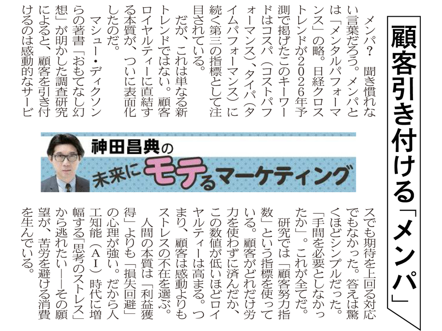 顧客引き付ける「メンパ」 ― 日経MJ連載「未来にモテるマーケティング」26/2/16号
